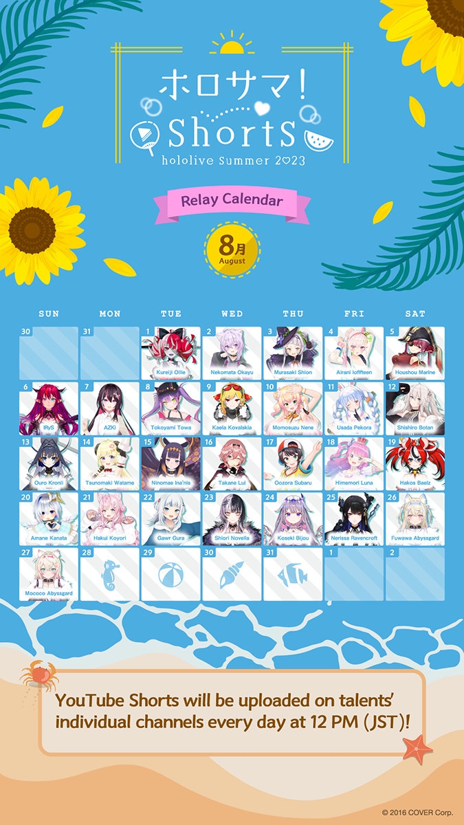 hololive talents are uploading summer-themed YouTube Shorts every day! Please enjoy this special summer together with our talents!