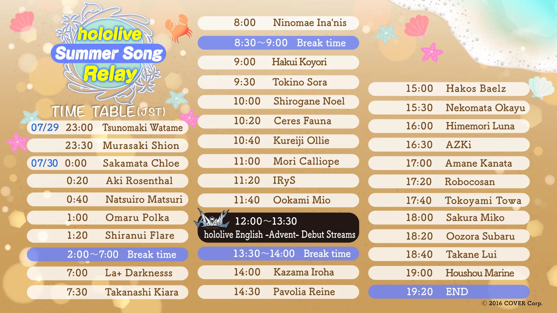 Please check the relay stream schedule for details!